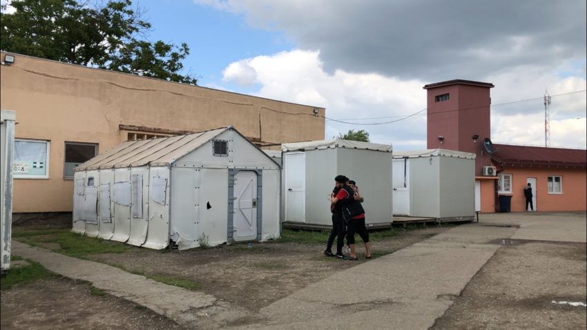 Kako je danima najavljivana kiša u nedelju, skratili smo našu posetu gradu i požurili da stignemo u „Adaševce“, jedan od tri prihvatna centra. Predviđeno je da se oko 70 vojnika smenjuje u obezbeđivanju centara, u kojima boravi oko 1.900 migranata iz 18 zemalja.