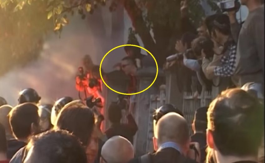 Dodao je da je bio leđima okrenut prema ogradi i da nije mogao dobro da vidi šta su radili neonacisti prilikom incidenta na ogradi. Prema njegovim rečima na ogradi je bilo 30 do 40 momaka koji su razmenjivali verbalne pretnje sa učesnicima skupa i galamili jedni na druge.