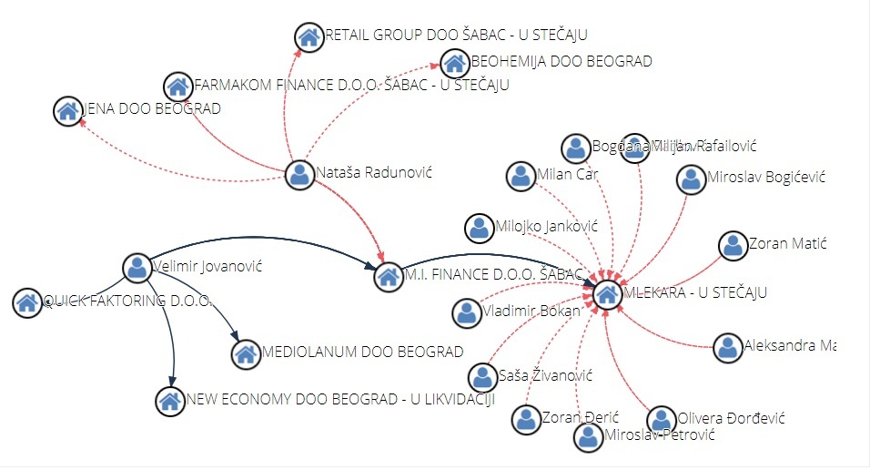 Velimir Jovanović stoprocentni je vlasnik je M.I. Finance Šabac, preduzeća koje je početkom 2016. kupilo Mlekaru Šabac iz stečaja za 950 miliona dinara. Prethodno je M.I.Finance bio zakupac mlekare od otvaranja stečaja u martu 2015. godine. Privredni sud u Valjevu je otvorio stečaj zbog trajne nesposobnosti plaćanja, a na predlog vašingtonskog IFC-a. Mlekara Šabac je do uvođenja stečaja bila u sastavu Koncerna Farmakom.