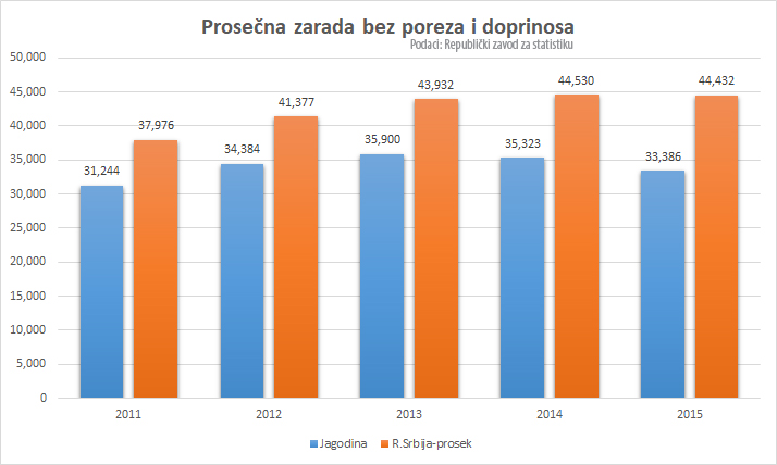 Uprkos utisku javnosti da u Jagodini teku med i mleko, prosečna plata godinama je daleko ispod republičkog proseka (tabela 1), a čak nije najveća ni u Pomoravskom okrugu, jer su plate veće u Despotovcu i Svilajncu. Prema podacima Republičkog zavoda za statistiku, prema visini prosečne neto zarade u trećem kvartalu 2017. godine, Jagodina se sa 35.835 dinara nalazi tek na 113 mestu od ukupno 167 lokalnih samouprava u Srbiji. Tokom izborne kampanje 2012. godine Dragan Marković izjavio je da će u tom gradu do 2015. godine bez posla biti samo oni koji neće da rade, jer će „svi nezaposleni biti zaposleni“. Prema podacima Republičkog zavoda za statistiku, Jagodina je 2015. godinu završila sa 10.432 nezaposlena.