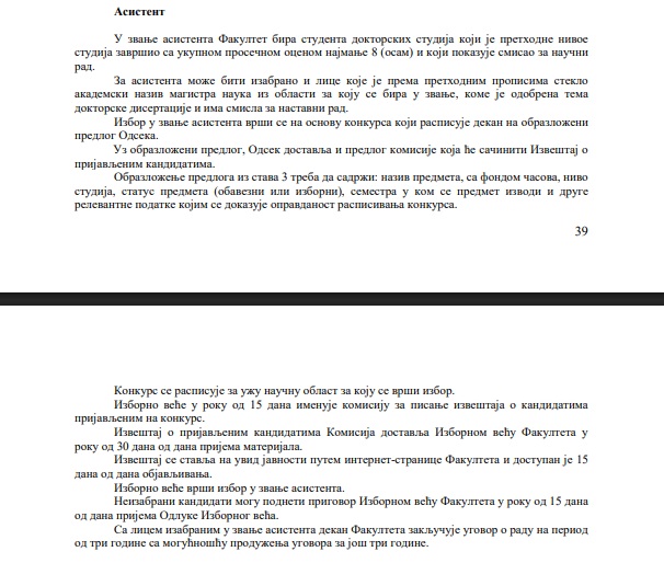 Koje uslove mora da ispunjava asistent propisuje i Statut Filozofskog fakulteta, a njih Pavkov ispunjava, dodaje Milinkov.