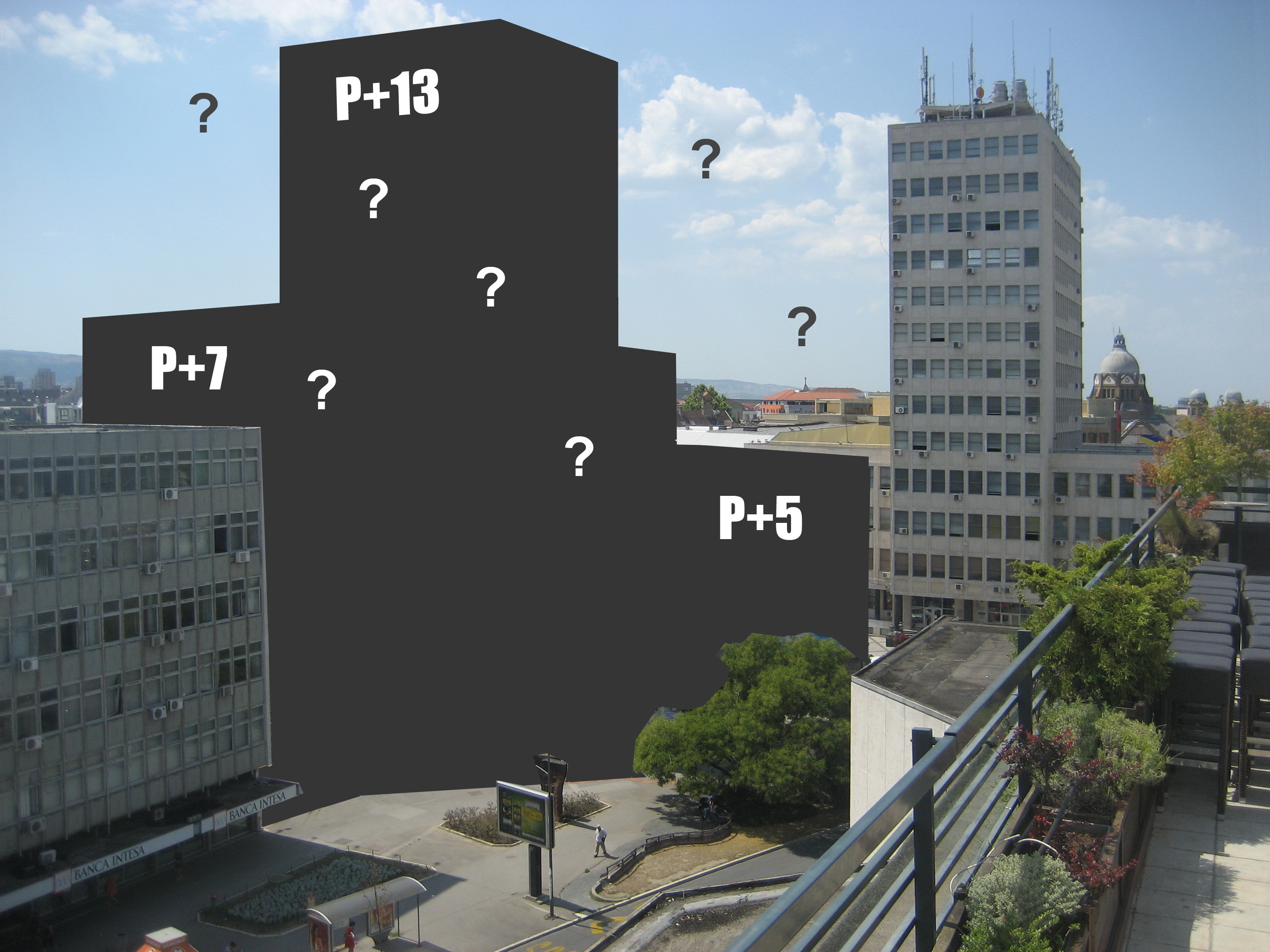 U otvorenom pismu, oni su podsetili da po trenutno važećem Generalnom urbanističkom planu grada Novog Sada do 2021. godine (Službeni list grada Novog Sada br.39/2006), u gradu nije dozvoljena gradnja viša od sedam etaža, pa se čak i tada traži razrada lokacije posebnim urbanističkim projektom. Plan se koriguje samo u izuzetnim uslovima, kada za tako oziljan posao postoje uporišta u opštem i celokupnom javnom interesu. „U tim uslovima, predlog za objekat od 13 etaža se čini kao neslana urbanistička šala uz sadejstvo sa, za sada nevidljivim, privatnim kapitalom i njegovim (političkim) uticajem na (demokratski) izabranu lokalnu vlast“, navodi se u pismu.