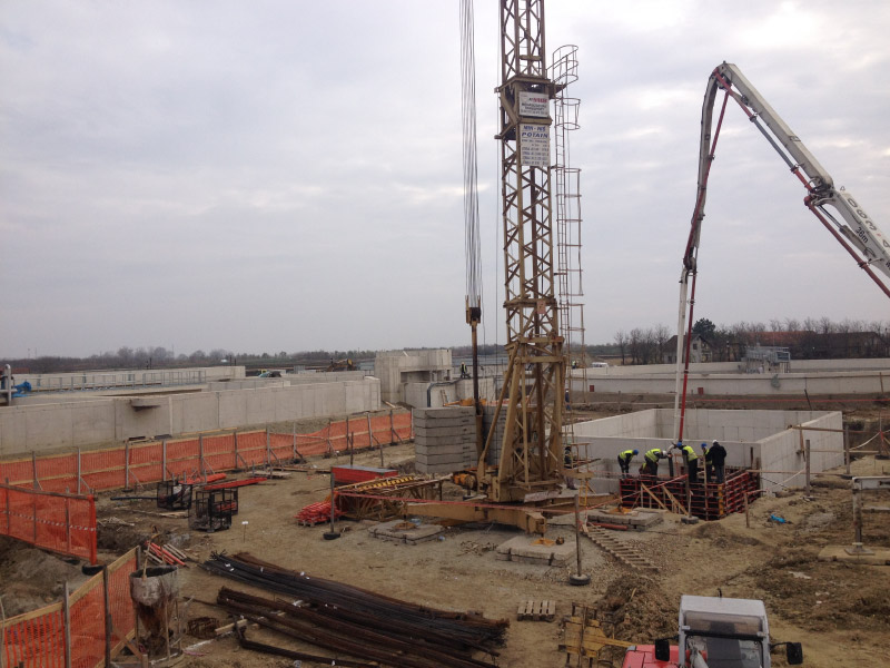 Različite minimume neophodne za rad dva nivoa prečišćavanja otpadnih voda, dodatno je zakomplikovala i činjenica da na izgradnji nije angažovan jedan, već dva izvođača radova, zasebno na liniji vode i liniji mulja – sa odvojenim ugovorima. Na liniji vode angažovan je francusko-srpski konzorcijum OTV-Millennium Team, dok je za liniju mulja izabrana Laad group iz Beograda. U aprilu ove godine, iz međuopštinske kancelarije za implementaciju projekta najavili su za VOICE da se završetak radova na liniji vode očekuje u julu, kao i da bi se konačan dogovor o završetku linije mulja mogao očekivati u septembru.
